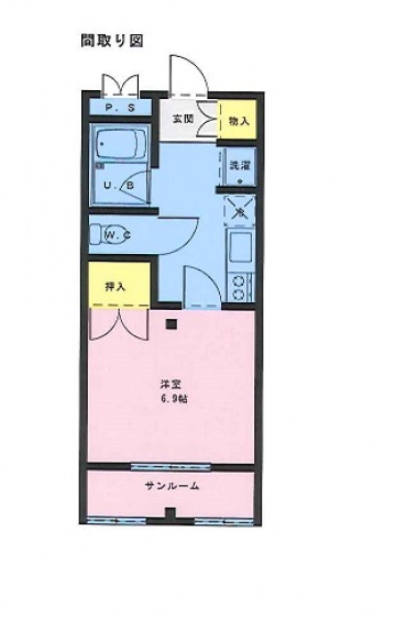 間取詳細 | 洋室(6.9帖)、サンルーム、収納、キッチン、浴室、トイレ |