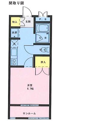 | 間取詳細 | 洋室(6.7帖)、サンルーム、収納、キッチン、浴室、トイレ |